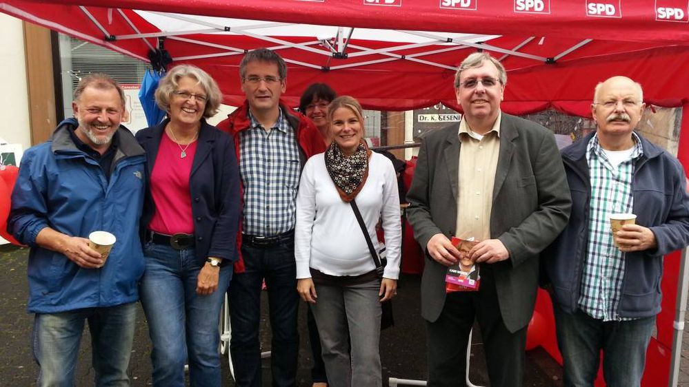 Wahlkampf in Hachenburg für Gabi Weber und Peer Steinbrück. Die Stimmung am Infostand ist gut, die Gäste verstehen das wir den Wechsel jetzt brauchen.