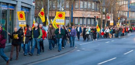 Foto: Beim „Montagsspaziergang“ in Montabaur wird jede Woche nicht nur gegen Atomkraftwerke sondern auch für den Einsatz Erneuerbarer Energien demonstriert.